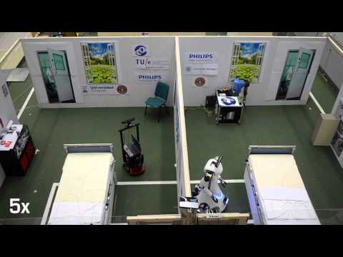 This video made in 2014 summarizes the final demonstrator of the joint project RoboEarth -- A World Wide Web for robots (http://roboearth.org/). The demonstrator includes four robots collaboratively working together to help patients in a hospital. These robots used their common knowledge base and infrastructure in the following ways: 1. a knowledge repository to share and learn from each others' experience, 2. a communication medium to perform collaborative tasks, and 3. a computational resource to offload some of their heavy computational load.